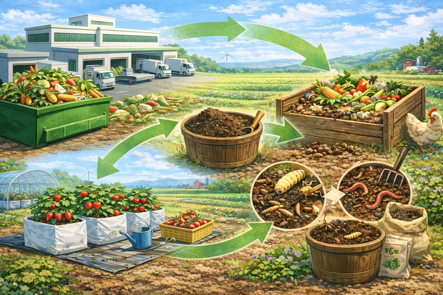 これまで産業界廃棄物として焼却処分するしかなかった食品残渣などを、腐植菌や昆虫などを使って有機肥料(堆肥)を作り、再び畑の肥料として利用する研究です。
