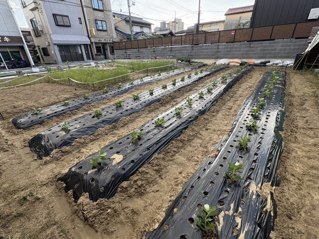 入り口の袋栽培による都市型農業の実証と、